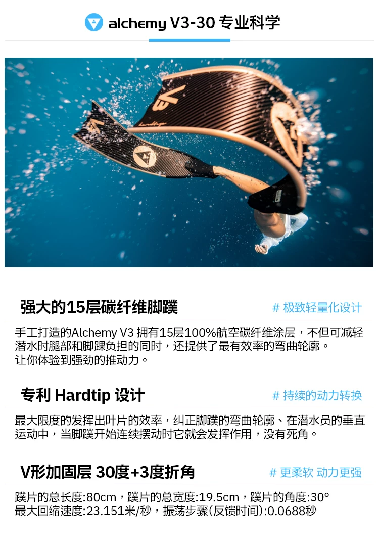 商品名称: 【以旧换新】欧洲制造V3-30三角专业自由潜水碳纤维长脚蹼